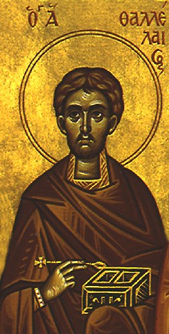 Τῶν Μαρτύρων σύναθλος, ἀναδειχθεὶς καὶ ὁπλίτης, στρατιώτης ἄριστος, τοῦ Βασιλέως τῆς δόξης, γέγονας διὰ βασάνων καὶ τιμωρίας, ἔπαρσιν εἰδωλολατρῶν καταπατήσας, διὰ τοῦτο τὴν σεπτήν σου, ὑμνοῦμεν μνήμην σοφὲ Θαλλέλαιε.