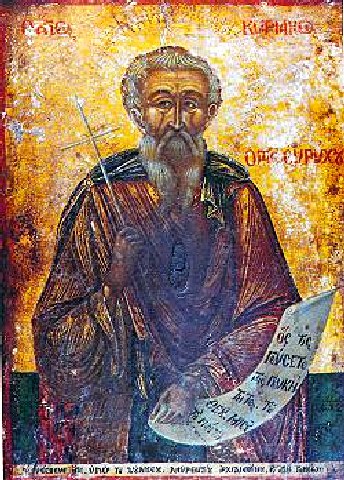 Τῆς ἐρήμου πολίτης καὶ ἐν σώματι ἄγγελος καὶ θαυματουργὸς ἀνεδείχθης, Θεοφόρε Κυριακὲ πατὴρ ἠμῶν νηστεία, ἀγρυπνία, προσευχή, οὐράνια χαρίσματα λαβῶν, θεραπεύεις τοὺς νοσοῦντας, καὶ τᾶς ψυχᾶς τῶν πίστει προστρεχόντων σοί. Δόξα τῷ δεδωκότι σοὶ ἰσχύν, δόξα τῷ σὲ στεφανώσαντι, δόξα τῷ ἐνεργούντι διὰ σοῦ πάσιν ἰάματα.