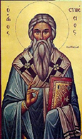 Τῇ ὑπερμάχῳ καὶ θερμῇ ἀντιλήψει σου, προσφεύγομεν οἱ πιστοὶ πάτερ Συνέσιε, τοῦ λυτρωθῆναι διά σοῦ τῶν θλίψεων καὶ κινδύνων, ἀλλ᾿ ὡς ἔχων παῤῥησίαν πρὸς τὸν Κύριον, ἐκ παντοίων ἡμᾶς σῷζε περιστάσεων, ἵνα κράζωμεν, χαίροις πάτερ Συνέσιε.