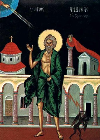 Ο Άγιος Ανδρέας, ο διά Χριστόν σαλός, καταγόταν από την Σκυθία και έζησε κατά τους χρόνους του αυτοκράτορα Λέοντος ΣΤ’ του Σοφού (886 – 912 μ.Χ.).