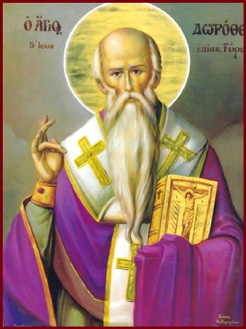 Χαίροις οὐρανίων μυσταγωγέ, χαίροις τῶν τελείων δωρημάτων ἡ ἀπαρχή, χαίροις τοῦ τῶν πάντων Θεοῦ ἡ εὐκληρία· Δωρόθεε τῆς Τύρου ἔξοχον ἄκουσμα.