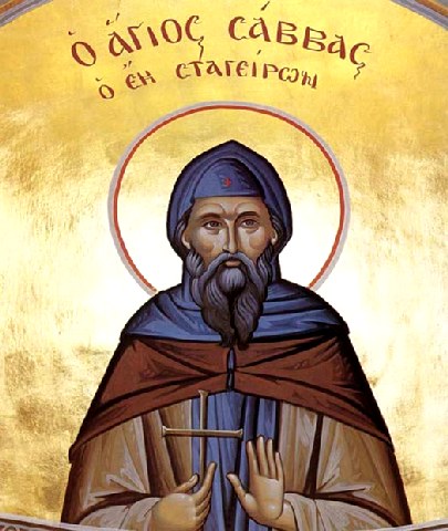 Των Σταγείρων το κλέος και του Άθω το καύχημα, τον Οσιομάρτυρα Σάββα, εν ωδαίς ευφημήσωμεν, ασκήσει και αθλήσει κρατερά ενίκησε τον δόλιον εχθρόν, και κατ’ όναρ ηξιώθη θείας φωνής, προειπούσης το μαρτύριον. Δόξα τω σε δοξάσαντι Χριστώ, δόξα τω σε ενισχύσαντι, δόξα εν υστέροις τοις καιροίς, σε στεφανώσαντι.