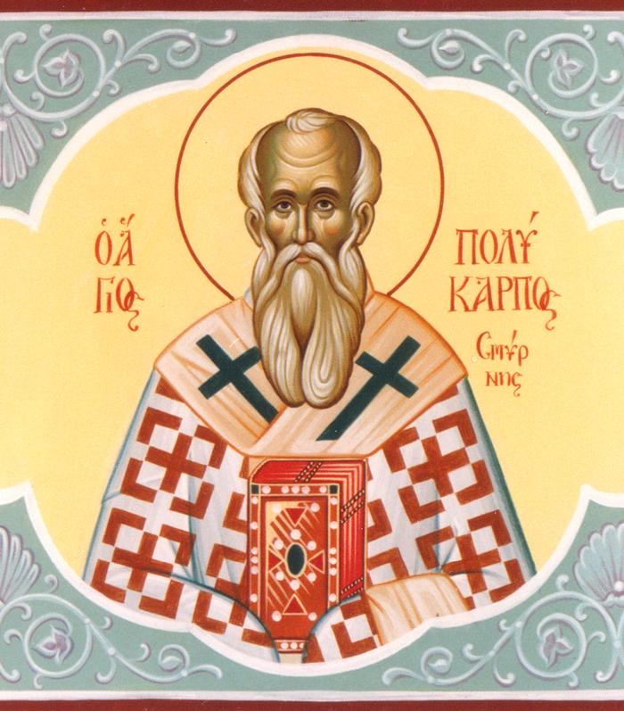 Η οσιακή και μαρτυρική μορφή του Αγίου Πολυκάρπου επισκόπου Σμύρνης δεσπόζει στο αγιολόγιο της σημερινής ημέρας. Συγκαταλέγεται στη χορεία των λεγομένων Αποστολικών Πατέρων, αφού υπήρξε αυτήκοος μάρτυρας του Αποστολικού κηρύγματος και μαθητής του Ευαγγελιστή Ιωάννη.