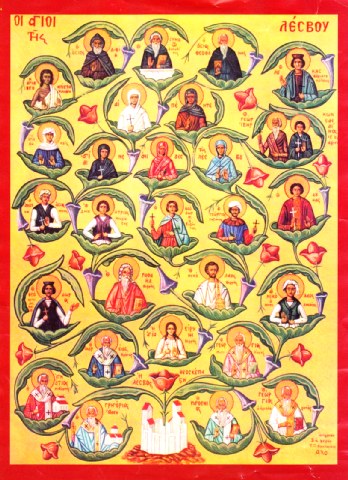 Την πρώτη μετά των Αγίων Πάντων Κυριακή η Εκκλησία μας εορτάζει την μνήμη των εν Λέσβω διαλαμψάντων Αγίων. Η Ακολουθία τους είναι γραμμένη από τον Υμνογράφο της Μεγάλης του Χριστού Εκκλησίας Γεράσιμο Μικραγιαννανίτη.