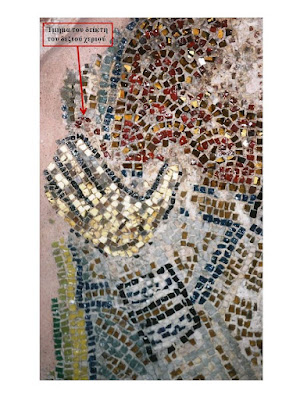 Το “χρύσωμα” των χεριών του αγίου αποτελεί επέμβαση στο ψηφιδωτό του 5ου αιώνα, η οποία έγινε πιθανόν τον 7ο αιώνα ως έκφραση τιμής και λατρείας προς τον άγιο κατόπιν θαυματουργικής θεραπείας ασθενούς.