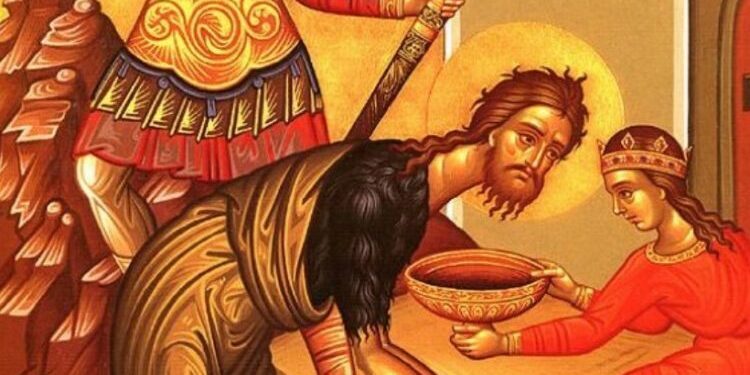 Τότε ἡ αἱμοβόρος Ἡρωδιὰς εἶπε στὴν κόρη της νὰ ζητήσει στὸ πιάτο τὸ κεφάλι τοῦ Ἰωάννη. Πράγμα ποὺ τελικὰ ἔγινε.