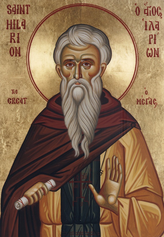 Ταῖς τῶν δακρύων σου ροαῖς, τῆς ἐρήμου τό ἄγονον ἐγεώργησας• καί τοῖς ἐκ βάθους στεναγμοῖς, εἰς ἑκατόν τούς πόνους ἐκαρποφόρησας• καί γέγονας φωστήρ τή οἰκουμένη, λάμπων τοῖς θαύμασιν, Ἰλαρίων Πατήρ ἠμῶν ὅσιε, πρέσβευε Χριστῷ τῷ Θεῶ, σωθῆναι τάς ψυχᾶς ἠμῶν.