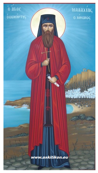 Εκ τῆς Λίνδου ἔλαμψας, ὡς μυστικὸς ἑωσφόρος, καὶ λαμπρῶς κατηύγασας, τὴν τοῦ Χριστοῦ Ἐκκλησίαν· βίον γάρ, τῶν μοναζόντων ἐξησκημένος, ἤθλησας, ὑπὲρ τῆς πίστεως στεῤῥοψύχως· διὰ τοῦτο Μαλαχία, Ὁσιομάρτυς πιστῶς τιμῶμέν σε.
