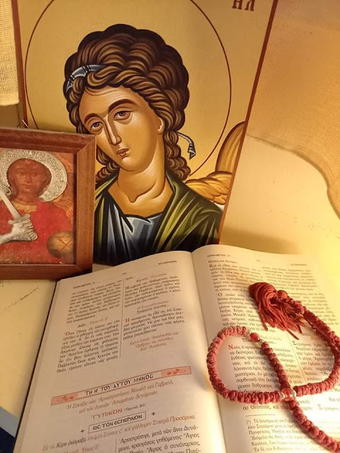 Άγιε Άγγελε, ο εφεστώς της αθλίας μου ψυχής και ταλαιπώρου μου ζωής, μη εγκαταλίπης με τον αμαρτωλόν, μηδέ αποστής απ᾿ εμού διά την ακρασίαν μου·