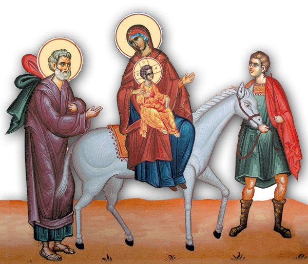 Σήμερον ὁ χρόνιος ἐλύθη δεσμός, τῆς καταδίκης τοῦ Ἀδάμ. Ὁ παράδεισος ἡμῖν ἠνεῴχθη, ὁ ὄφις κατηργήθη. Διότι ἣν πρῴην ἠπάτησε, νῦν ἐθεάσατο, τοῦ Δημιουργοῦ γενομένην μητέρα.