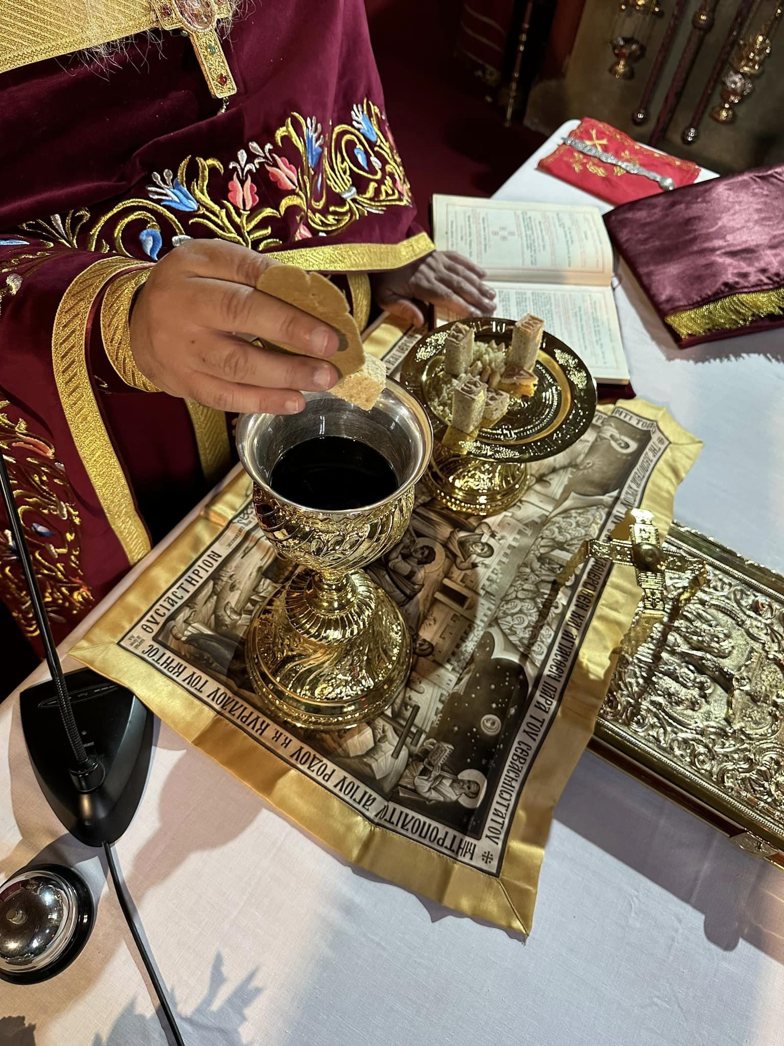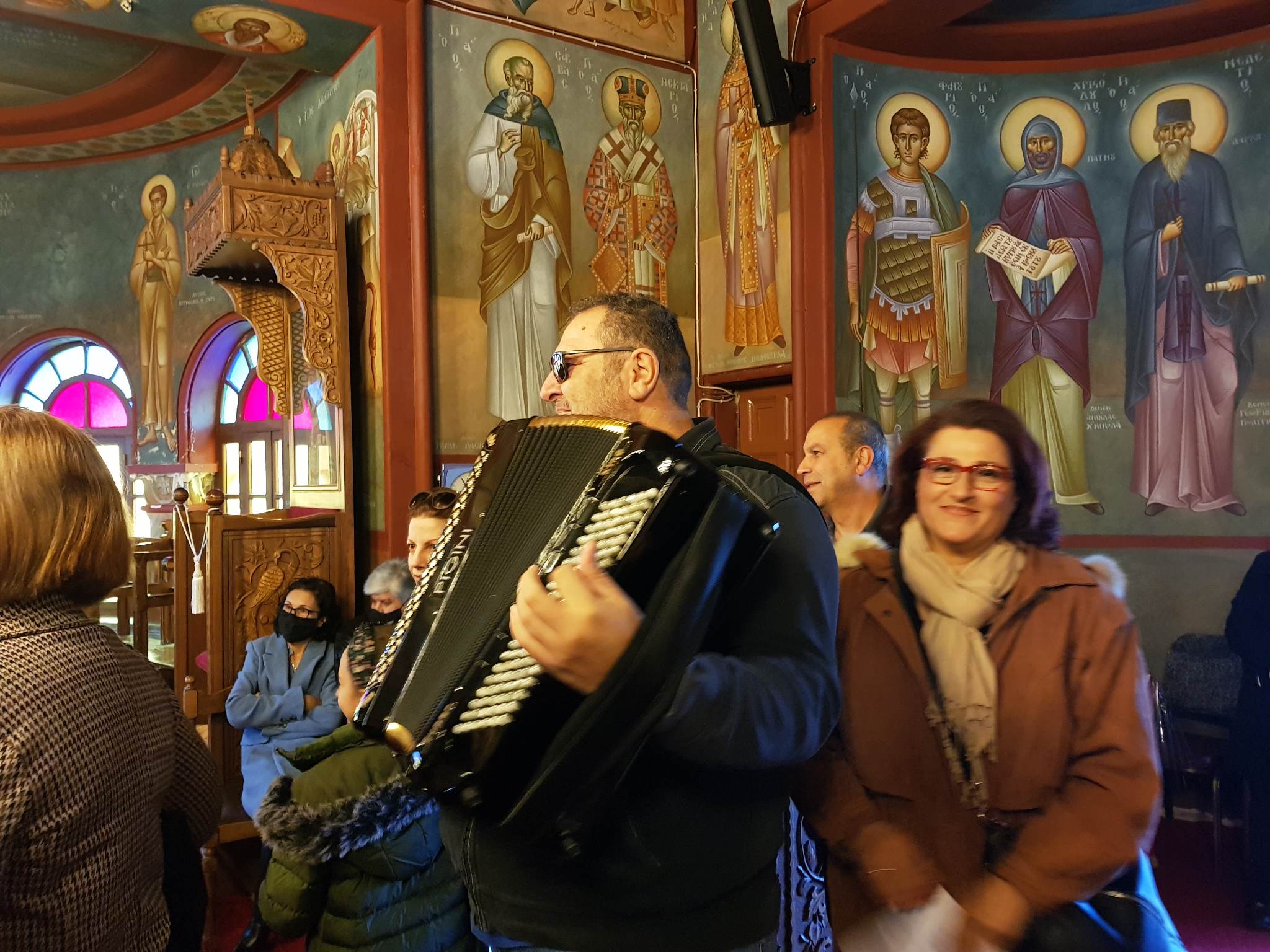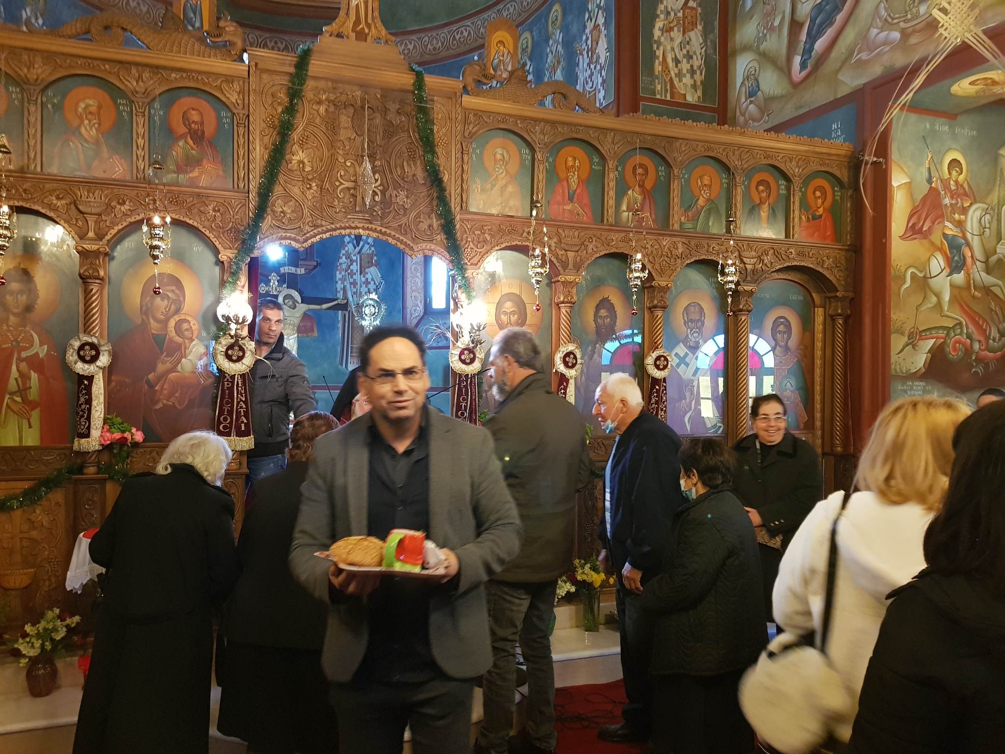 Πλήθος κόσμου παρακολούθησε την Θ. Λειτουργία, έψαλλαν οι κ. Τσαμπίκος Διακοσταματίου, κ. Παναγιώτης Πέρος, κ. Ελευθέριος Μπότσης.