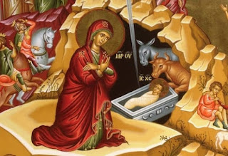(Χριστέ, Συ που με τον λόγο σου δημιούργησες και άπλωσες τον ουρανό, εισέρχεσαι μέσα σε σπήλαιο και ανακλίνεσαι σε φάτνη αλόγων ζώων. Κι αυτό γιατί από την αγάπη σου θέλεις να μας λυτρώσεις από την αλογία της ζωής).