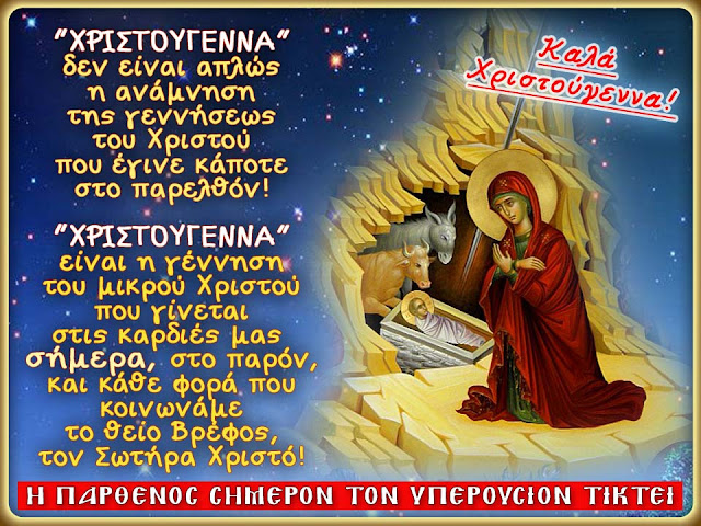 Η Παρθένος (Μαρία) σήμερα τον Υπερούσιο (Θεό) γεννάει