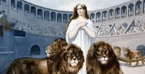 Μόλις μπήκε στην αρένα, οι βασανιστές της απελευθέρωσαν άγριες αρκούδες και λιοντάρια για να την κατασπαράξουν. Τα θηρία όμως την πλησίασαν και άρχισαν να της γλύφουν τα πόδια. Μία μόνο αρκούδα την δάγκωσε ελαφρά στο πόδι. Πληγή ή σημάδι δεν φάνηκε, εκείνη την στιγμή όμως φωνή εξ ουρανού ακούσθηκε να την καλή στον Παράδεισο: