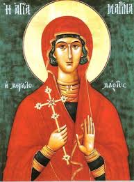 Παρθενίας κάλλεσι, πεποικιλμένη παρθένε, ἀκηράτοις στέμμασιν, ἐστεφανώθης Mαρίνα, αἵμασι, τοῦ μαρτυρίου δε φοινιχθεῖσα, θαύμασι καταλαμπρύνθης τῶν ἰαμάτων, καὶ τῆς νίκης τὰ βραβεῖα, ἐδέξω Μάρτυς χειρὶ τοῦ Κτίστου σου.