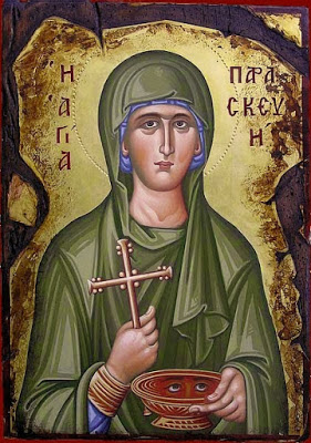 Τὴν σπουδήν σου τῇ κλήσει κατάλληλον, ἐργασαμένη φερώνυμε, τὴν ὁμώνυμόν σου πίστιν εἰς κατοικίαν κεκλήρωσαι, Παρασκευὴ ἀθλοφόρε· ὅθεν προχέεις ἰάματα, καὶ πρεσβεύεις ὑπὲρ τῶν ψυχῶν ἡμῶν.