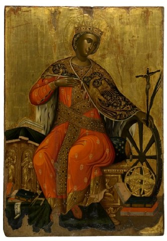 Η Αγία Αικατερίνη καταγόταν από οικογένεια ευγενών της Αλεξάνδρειας, «θυγάτηρ βασιλίσκου τινός ονομαζομένου Kώνστου», και μαρτύρησε στις αρχές του 4ου αιώνα μ.Χ. (304 μ.Χ.)