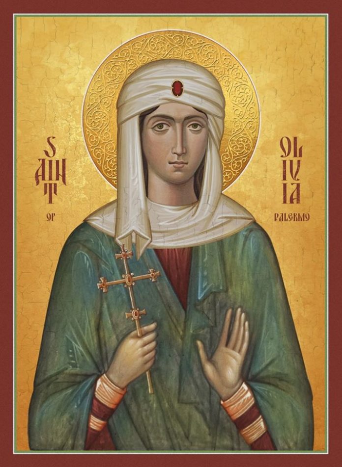 Το 454 μ.Χ. ο Γιζέριχος, βασιλιάς των Βανδάλων, κατέκτησε τη Σικελία και κατέλαβε τον Παλέρμο, σκοτώνοντας πολλούς χριστιανούς. Όταν ήταν δεκατριών ετών, η Αγία Ολίβια άρχισε να επισκέπτεται τους φυλακισμένους χριστιανούς για να τους ανακουφίζει και να τους παροτρύνει να παραμείνουν σταθεροί στην πίστη τους.