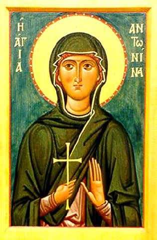 Η Αγία Μάρτυς Αντωνίνα καταγόταν από την πόλη Νίκαια της Βιθυνίας και έζησε κατά τους χρόνους του αυτοκράτορα Μαξιμιανού (286 – 305 μ.Χ.).