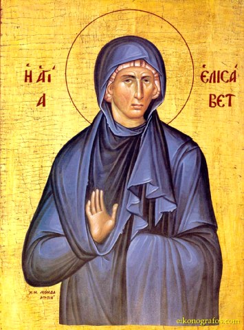 Ἐν σοί Μῆτερ ἀκριβῶς διεσώθη τό κατ᾽ εἰκόνα· λαβοῦσα γάρ τόν σταυρόν, ἠκολούθησας τῷ Χριστῷ, καί πράττουσα ἐδίδασκες, ὑπερορᾷν μέν σαρκός, παρέρχεται γάρ· ἐπιμελεῖσθαι δέ ψυχῆς, πράγματος ἀθανάτoυ· διό καί μετά Ἀγγέλων συναγάλλεται, Ὁσία Ἐλισάβετ τό πνεῦμά σου.