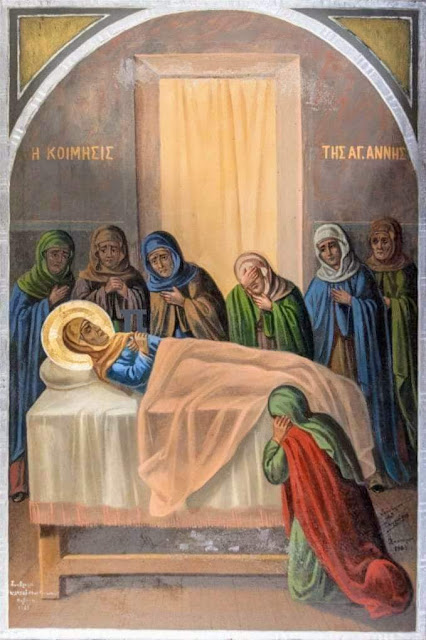 την Κοίμηση της Πανσέβαστης Μητέρας της Υπεραγίας Θεοτόκου.Η Αγία Άννα καταγόταν από τη φυλή του Λευΐ, ήταν κόρη του ιερέα του Ματθάν και της Μαρίας. Το ζεύγος αυτό έζησε κατά τους χρόνους της Κλεοπάτρας και Σωσιπάτρου του βασιλέως των Περσών.