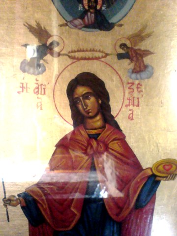 Βαφαίς των αιμάτων σου, φαιδράν στολήν σε αυτή, Ξενία, επέχρωσας, παρισταμένη Χριστώ ως νύμφη πανάσπιλος. Είληφας δε την χάριν, μαγγανείας του λύειν, δαίμονας εκδιώκειν, και τας νόσους ιάσθαι. Ικέτευε εκτενώς, υπέρ των ψυχών ημών.