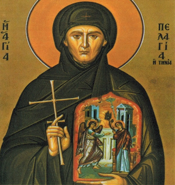 Ἀμέμτπως ἐβίωσας ἐν ἐγκράτειᾳ πολλῇ, καὶ κόποις ἀσκήσεως, καὶ ἐν ἀγάπῃ θερμῇ, Πελαγία θεόληπτε· ὅθεν τὴν Θεοτόκον, ἐπαλλήλως κατεῖδες, μηνύουσάν σοι Εἰκόνος, τὴν ἀνεύρεσιν ταύτης· ᾗ πρέσβευε Ὁσία, ὑπὲρ τῶν τιμώντων σε.