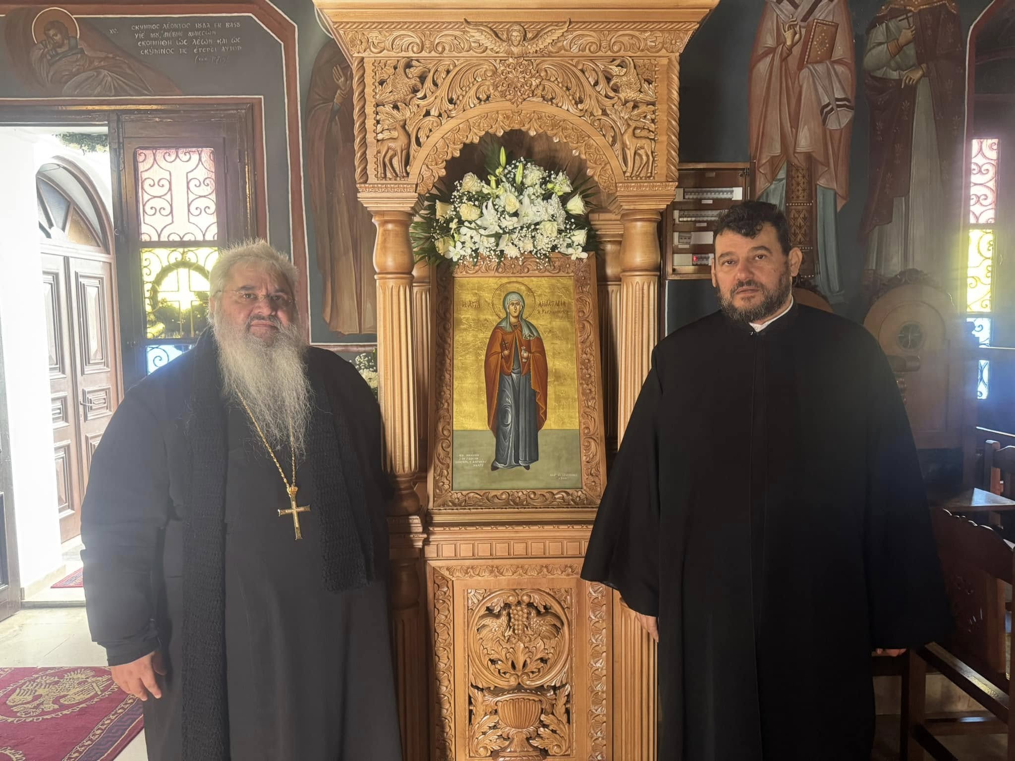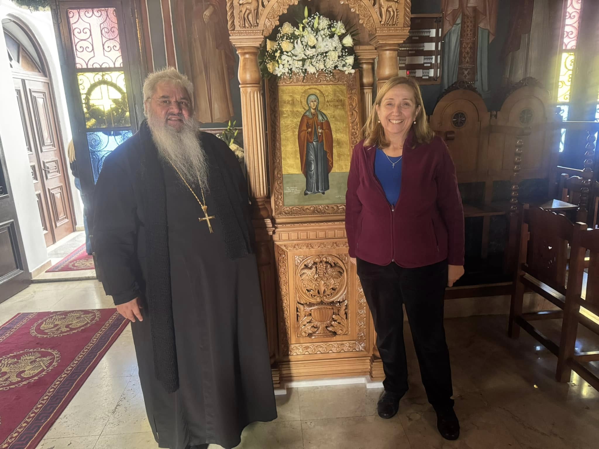 Ο Ιερατικός προϊστάμενος της Αγίας Αναστασίας, ο π. Διονύσιος Τσαλούπης ήταν εκεί για τις προετοιμασίες μαζί και η φίλη, γλυκητάτη και επιτρόπισσα κ. Ανθούλα Βελιάδη τ. τραπεζικός υπάλληλος.