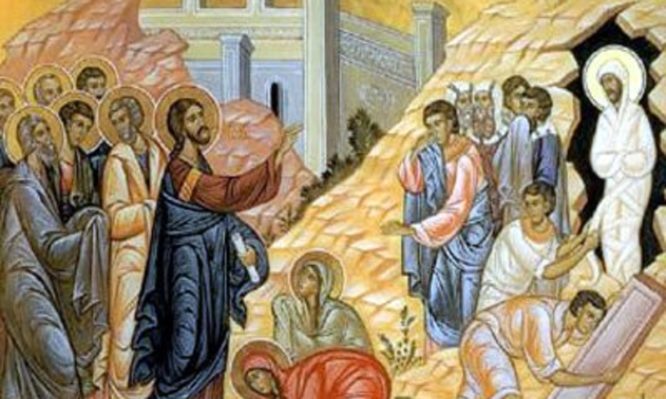 Όταν έφθασαν στον τάφο, ο Κύριος ως άνθρωπος δάκρυσε.Kαι ζήτησε να ανοικτεί ο τάφος. Η Μάρθα προσπάθησε να το αποτρέψει γιατί μετά από τέσσερεις ημέρες η σάρκα του νεκρού θα είχε αρχίσει να σήπεται και θα είχε άσχημη μυρωδιά.