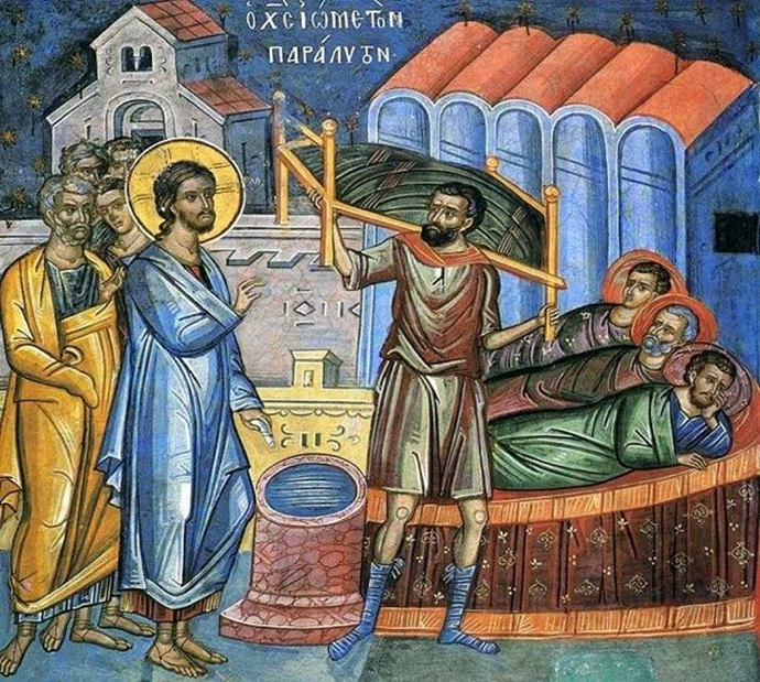 Το σημερινό θαύμα του Ευαγγελίου αναφέρεται στη θεραπεία του παραλύτου στην Καπερναούμ. Δίδασκε ο Χριστός σε ένα σπίτι, το οποίο ήταν γεμάτο από κόσμο, με αποτέλεσμα να μην μπορεί κάποιος να εισέλθει εντός της οικίας.