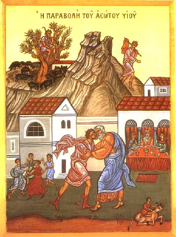 Όμως ο στοργικός πατέρας του τον δέχτηκε ως γιο του και τον περιποιήθηκε δεόντως, παρά τις διαμαρτυρίες του μεγάλου γιου του, διότι «νεκρός ην και ανέζησε, και απολωλώς ήν και ευρέθη».