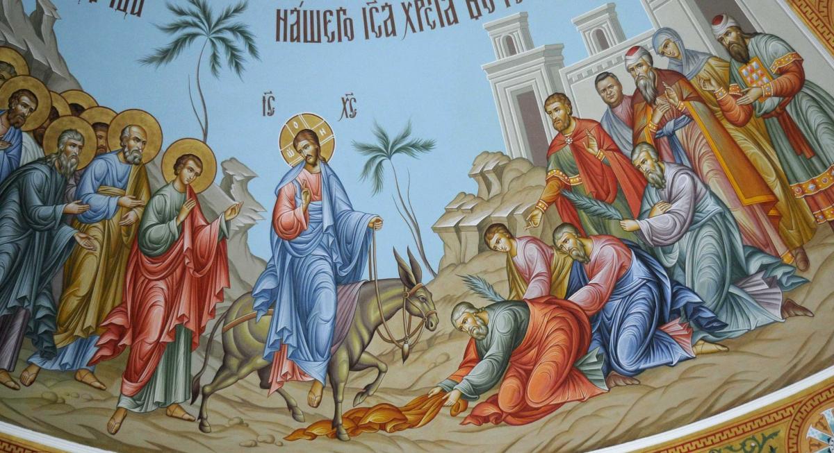 Ἀς βγοῦμε νά τόν προϋπαντήσουμε, νά δοῦμε τήν δόξα Του, νά τιμήσουμε τήν θριαμβευτική εἴσοδό Του, ὅπου ἔρχεται μαζί καί ἡ σωτηρία μας. Ντροπιάζονται οἱ δαίμονες. ἡ κατάρα λύεται, ὁ δράκοντας συντρίβεται. Ὁ Μεσσίας καθισμένος σέ ἕνα πουλάρι, ὡς σέ βασιλικό θρόνο, καταργεῖ γιά πάντα τά εἴδωλα.