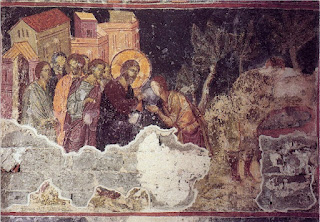 Ὁ Χριστὸς θεραπεύει κάποιον ἐκ γενετῆς τυφλό. Οἱ Φαρισαῖοι ὅμως ἐγείρουν θέμα: Ἡ θεραπεία ἔχει γίνει ἡμέρα Σάββατο, πράγμα κατ’ αὐτοὺς ἀνεπίτρεπτο, λόγῳ τῆς ἰσχύουσας ἀργίας τοῦ Σαββάτου. Ὡς ἐντριβεῖς γνῶστες τοῦ μωσαϊκοῦ νόμου, θεωροῦν ὅτι ὁ Χριστὸς εἶναι παραβάτης τοῦ νόμου, ἄνθρωπος ἁμαρτωλὸς καί, συνεπῶς, ἀποκλείεται νὰ εἶναι ἀπεσταλμένος τοῦ Θεοῦ.