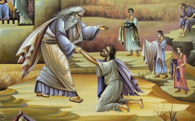 Όμως ο στοργικός πατέρας του τον δέχτηκε ως γιο του και τον περιποιήθηκε δεόντως, παρά τις διαμαρτυρίες του μεγάλου γιου του, διότι «νεκρός ην και ανέζησε, και απολωλώς ήν και ευρέθη».