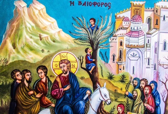 Έξι ημέρες πριν από το Πάσχα έρχεται ο Ιησούς στη Βηθανία, προσκαλεσάμενος σε δείπνο. Εκεί βρισκόταν και ο Λάζαρος τον οποίο είχε αναστήσει την προηγούμενη μέρα.