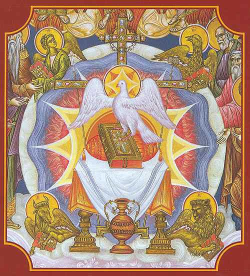 την Παναγία με τις μυροφόρες αριστερά, τον Ιωάννη, τον Ιωσήφ και το...