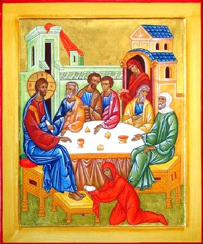 Δύο μέρες πριν το Πάσχα, καθώς ο Κύριος ανέβαινε προς τα Ιεροσόλυμα, κι ενώ βρισκόταν στο σπίτι στου λεπρού Σίμωνα, τον πλησίασε μια πόρνη γυναίκα κι άλειψε το κεφάλι Του με πολύτιμο μύρο.