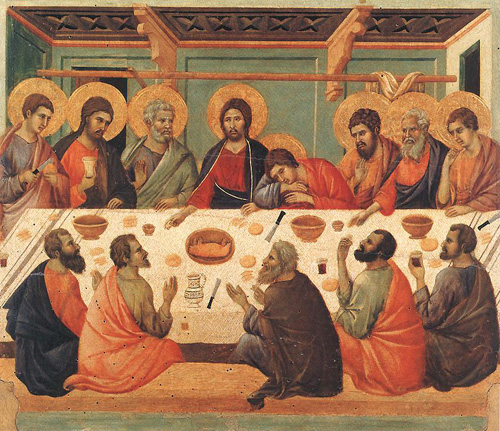 Ο αγαπημένος μαθητής Ιωάννης πέφτοντας στον τράχηλο του Διδασκάλου ρώτησε εξ’ ονόματος όλων: «Κύριε τις εστιν»; και ο Κύριος απάντησε: «Εκείνος εστιν ω εγώ βάψας το ψωμίον επιδώσω» (Ιωάν.13:26). Και βουτώντας τεμάχιο άρτου στο φαγητό το έδωσε στον Ιούδα. Αυτός το έφαγε και μετά από αυτό «εισήλθεν εις εκείνον ο Σατανάς» (Ιωάν.13:27).