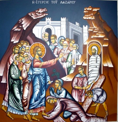 Μέ τήν ἀνάσταση τοῦ Λαζάρου προεικονίζεται καί προαναγγέλεται τόσο ἡ Ἀνάσταση τοῦ Χριστοῦ πού θά ἀκολουθήσει σέ λίγο, ὅσο καί ἡ ἐκ νεκρῶν ἀνάσταση κάθε ἀνθρώπου, καθώς λέει καί τό τροπάριο τῶν Αἴνων πού ψάλλουμε ἐκείνη τήν ἡμέρα.