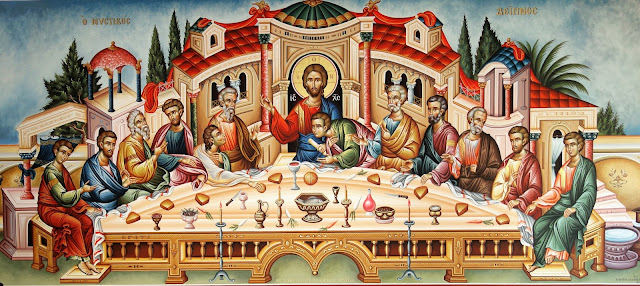 (β) Του Μυστικού Δείπνου, δηλαδή της παραδόσεως σ’ εμάς υπό του Κυρίου του Μυστηρίου της θείας Ευχαριστίας,