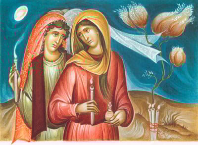 Κατά την Μ. Τρίτη επιτελούμε ανάμνηση (α) της περί των δέκα παρθένων γνωστής παραβολής του Κυρίου.