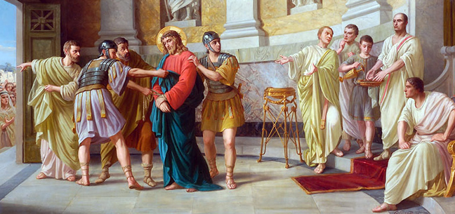 «Τότε ἀπέλυσεν αὐτοῖς τὸν Βαραββᾶν, τὸν δὲ ᾿Ιησοῦν φραγελλώσας παρέδωκεν ἵνα σταυρωθῇ (:τότε τους απελευθέρωσε τον Βαραββά, ενώ τον Ιησού, αφού διέταξε και τον μαστίγωσαν, τον παρέδωσε για να σταυρωθεί)»[Ματθ.27,26].Και γιατί Τον μαστίγωσε; Ή ως κατάδικο, ή επειδή ήθελε να προσδώσει στη δίκη κάποια επίφαση, ή για να χαριστεί σε εκείνους.