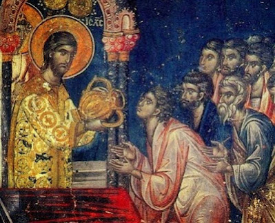 Ἡ μετοχή δηλαδή στά μυστήρια τῆς Ἐκκλησίας, ἰδίως τῆς Θείας Εὐχαριστίας. Σάν τόν ἄσωτο τότε πού ἐπιστρέφει στό σπίτι τοῦ Πατέρα, μπαίνουμε καί πάλι στήν πατρική ἀγκαλιά, μᾶς ντύνει Ἐκεῖνος μέ τήν πρώτη στολή, μᾶς κάνει ἄξιους συνδαιτημόνες τῆς βασιλείας Του.