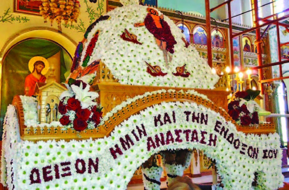 Στην Ουρανούπολη της Χαλκιδικής το στόλισμα του Επιταφίου είναι έργο πολύμηνης προσπάθειας. Εδώ και οχτώ χρόνια οι γυναίκες της περιοχής, χρησιμοποιώντας 70.000 πέρλες και 30.000 λουλούδια, στολίζουν τον επιτάφιο, «πατώντας» πάνω σε σχέδια της βυζαντινής παράδοσης.
