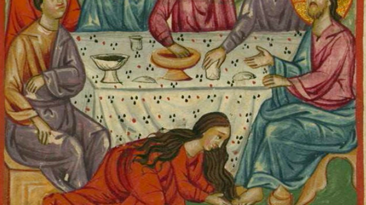 Θυμόμαστε την πόρνη γυναίκα που άλειψε με μύρο και δάκρυα μετάνοιας τα πόδια του Χριστού και έλαβε την άφεση για τις αμαρτίες της.