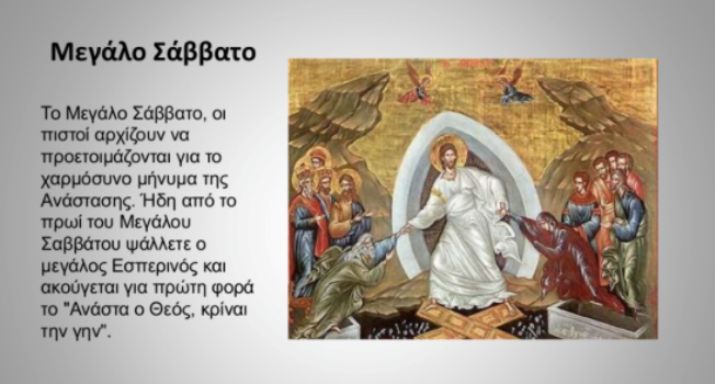 Τὴν ἄβυσσον ὁ κλείσας νεκρὸς ὁρᾶται· καὶ σμύρνῃ καὶ σινδόνι ἐνειλημμένος, ἐν μνημείῳ κατατίθεται, ὡς θνητὸς ὁ ἀθάνατος. Γυναῖκες δὲ αὐτὸν ἦλθον μυρίσαι, κλαίουσι πικρὸς καὶ ἐκβοῶσαι· Τοῦτο Σάββατόν ἐστι τὸ ὑπερευλογημένον, ἐν ᾧ Χριστὸς ἐφυπνώσας, ἀναστήσεται τριήμερος.
