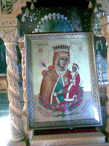 Το γεγονός έγινε αμέσως γνωστό στην περιοχή. Μια ευλαβής οικογένεια, ονομαζόμενη Κατσαρού, έχοντας την επιθυμία να προσφέρει «οίκον» προς στέγαση της εικόνας της Παναγίας, με ιδία πρωτοβουλία έκτισε ιδιωτικό παρεκκλήσιο με το όνομα Παναγία «Ρόδον Αμάραντον». Εκεί στεγάσθηκε η παλαιά αυτή εικόνα και λατρεύθηκε από τους κατοίκους της περιοχής.