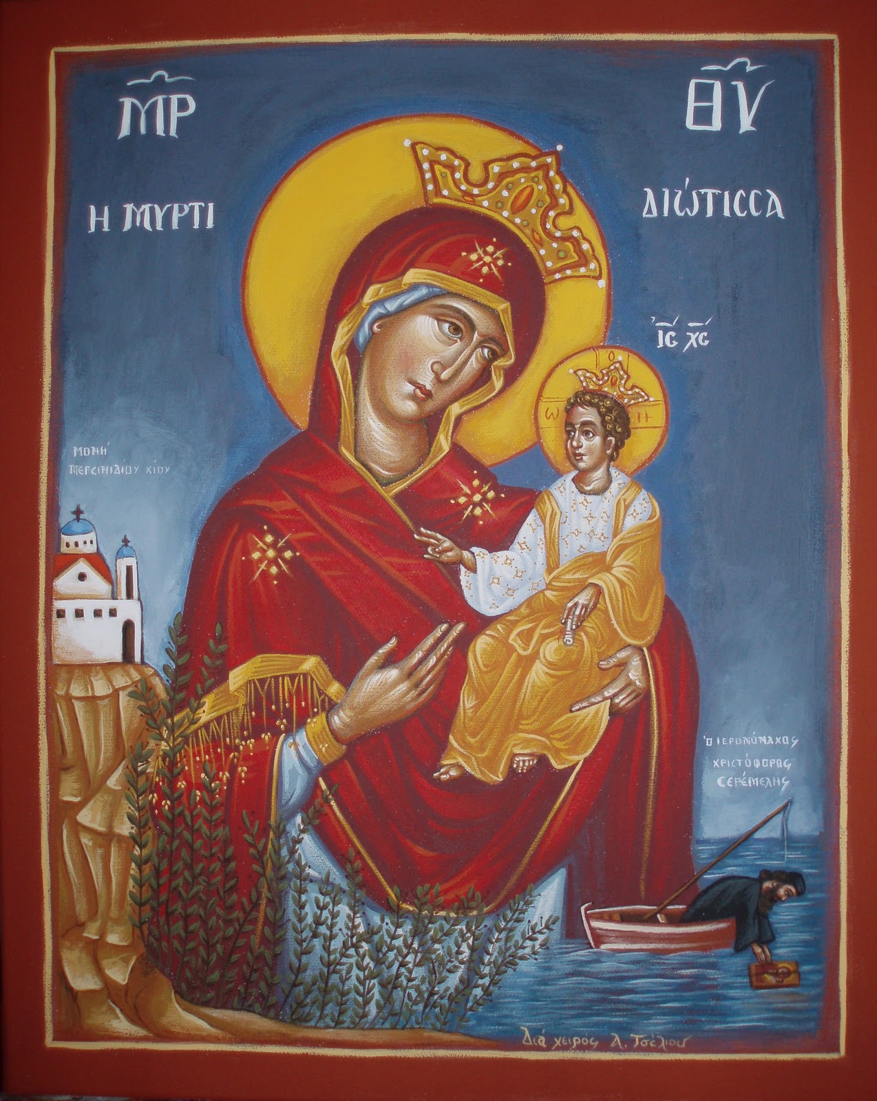 Ασπίδα μας εναντίον των αοράτων εχθρών και εναντίων των δαιμόνων είσαι Παναγία μας. Και κλειδί που μας άνοιξες πάλι τις πόρτες του παραδείσου.
