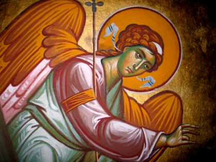 Γυρίζω, και τι να δω! Μια τεράστια φτερούγα, που είχε περάσει ο αρχάγγελος στον ώμο μου, με οδηγούσε να προχωρήσω για τη μεγάλη είσοδο..