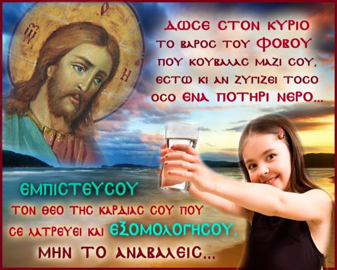Είναι σημαντικό να θυμάστε να διώχνετε τα άγχη και τους φόβους σας. Όσο πιο νωρίς μέσα στην ημέρα, αφήστε όλα τα βάρη σας στον Χριστό. Μην τα κουβαλάτε όλο το απόγευμα και όλο το βράδυ μαζί σας. Προσευχηθείτε και πείτε τα πρώτα στο Χριστό!